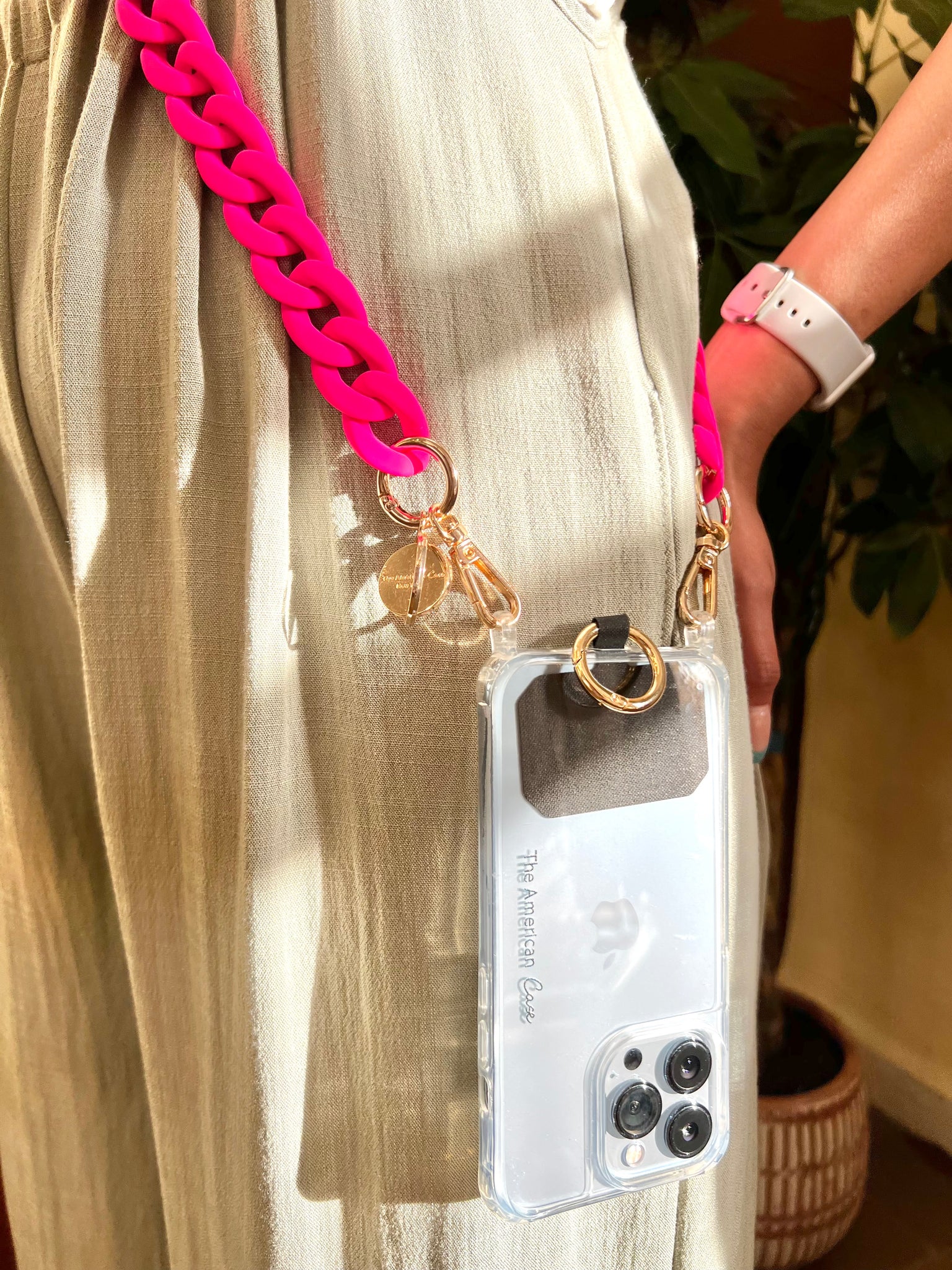 Includes gold ring clip for keys, AirPods case, or handbag and can be inserted into phone case